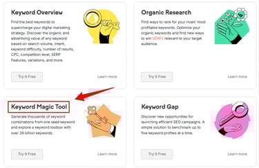 Use the Keyword Magic Tool to discover low-competition keywords you can rank for faster — perfect for boosting early traffic.